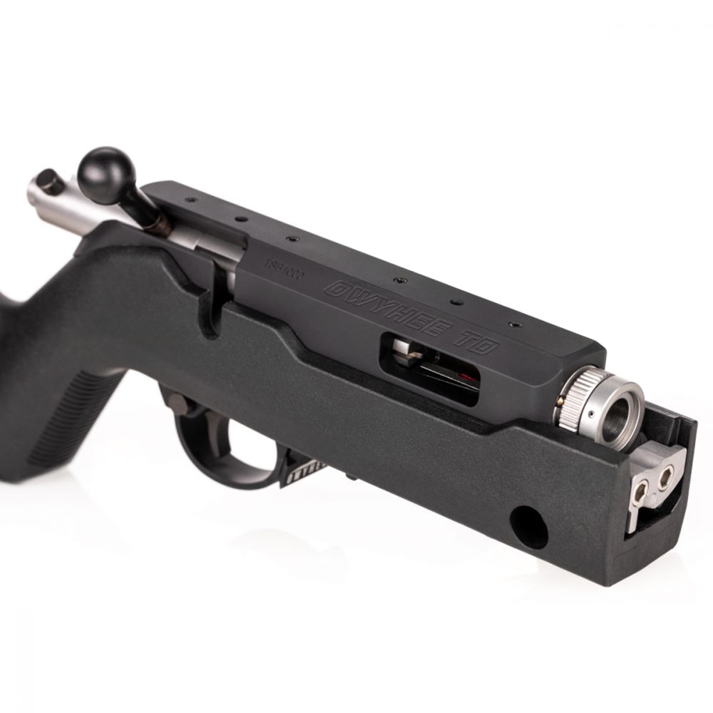 Please note that the Owyhee is not compatible with 10/22 style trigger packs (the safety bar is in a different location) nor 10/22 style barrels like the TSS integrally suppressed barrel (the notch for the extractor is in a different location). The only cross compatibility between this and a 10/22 are the stock and magazines.
