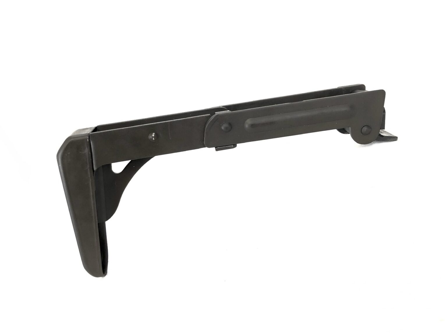Cosmetically, the parkerization of the weapon is in very good condition, with only minor surface scratches and use markings noted. The black polymer grip and foregrip are in like-new condition with no handling marks. The ratcheting top cover notes some minor surface wear markings. The wooden stock has some minor dents and surface markings, but is solid throughout with no cracks. The included folding stock notes no cosmetic or mechanical concerns.  All magazines included are fully functional with solid, stiff springs and intact followers.