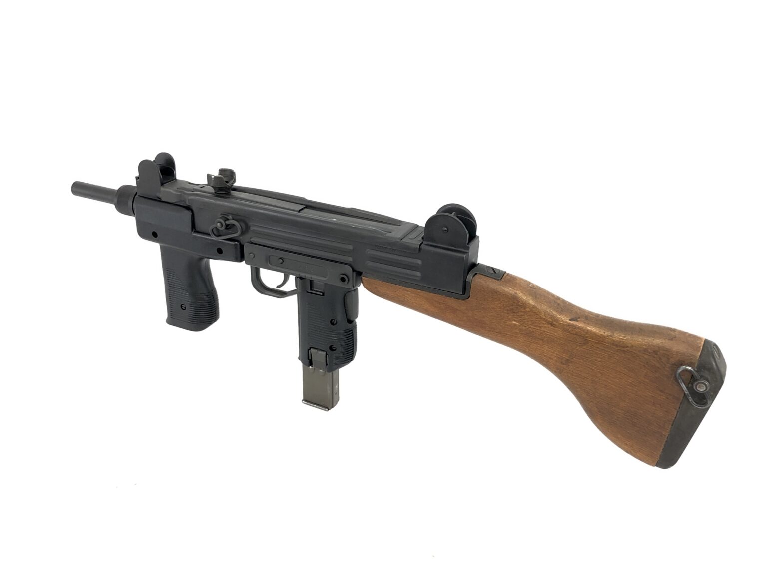 Purchase of this weapon will include both the Israeli wooden shoulder stock, as well as an original Israeli underfolding stock. In addition to the installed vertical grip, a standard Uzi polymer forearm is also included.  This model will also come with six total magazines (three 32rd mags and three 25rd mags), an Israeli military surplus magazine pouch, an original IMI magazine loader, and an original Israeli military sling.
