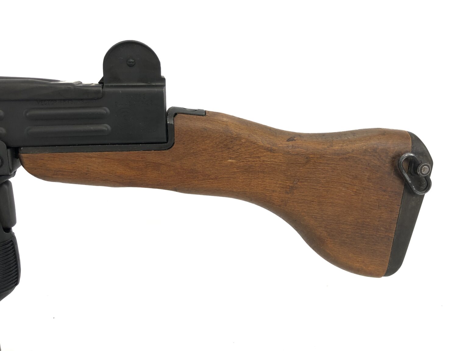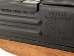 This factory made and registered NFA transferable machine gun was built by Vector Arms Inc. in North Salt Lake, UT using a Group Industries registered HR4332 UZI submachine gun receiver and original surplus UZI parts. Vector UZI’s are factory created submachine guns and were not semi-automatic converted models. This fantastic version is properly setup in an original SMG configuration with a windage adjustable front sight and will come with a large amount of original Israeli Uzi parts and accessories.  As a factory correct Uzi SMG, this model has no barrel restrictor ring, allowing it to accept standard Uzi SMG barrels. It was correctly SMG-made with no blocking bar to be removed, as the receiver was made from scratch to be a machine gun, allowing it to accept standard SMG full-auto bolts. It is currently setup with a removable wooden rifle stock and a polymer forward vertical grip assembly. It also includes a removable Blackjack buffer that is installed in the weapon to increase it’s rate of fire from 600rds a minute to roughly 700rds per minute.