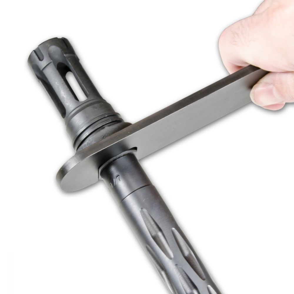 This heavy duty wrench was designed to work with our Phantom Q.D. mounting system. On one side you’ll find a 3/4″ open ended wrench made to loosen/tighten our Q.D. Mounts and our Direct Thread mounts. On the other, a teeth pattern made to fit around our Phantom Q.D. adapters as well as a 1/2″ Torque wrench slot to help tighten things to a specific torque spec. This is the replacement wrench you need for your Nitro® or Turbo® K Suppressor System.
