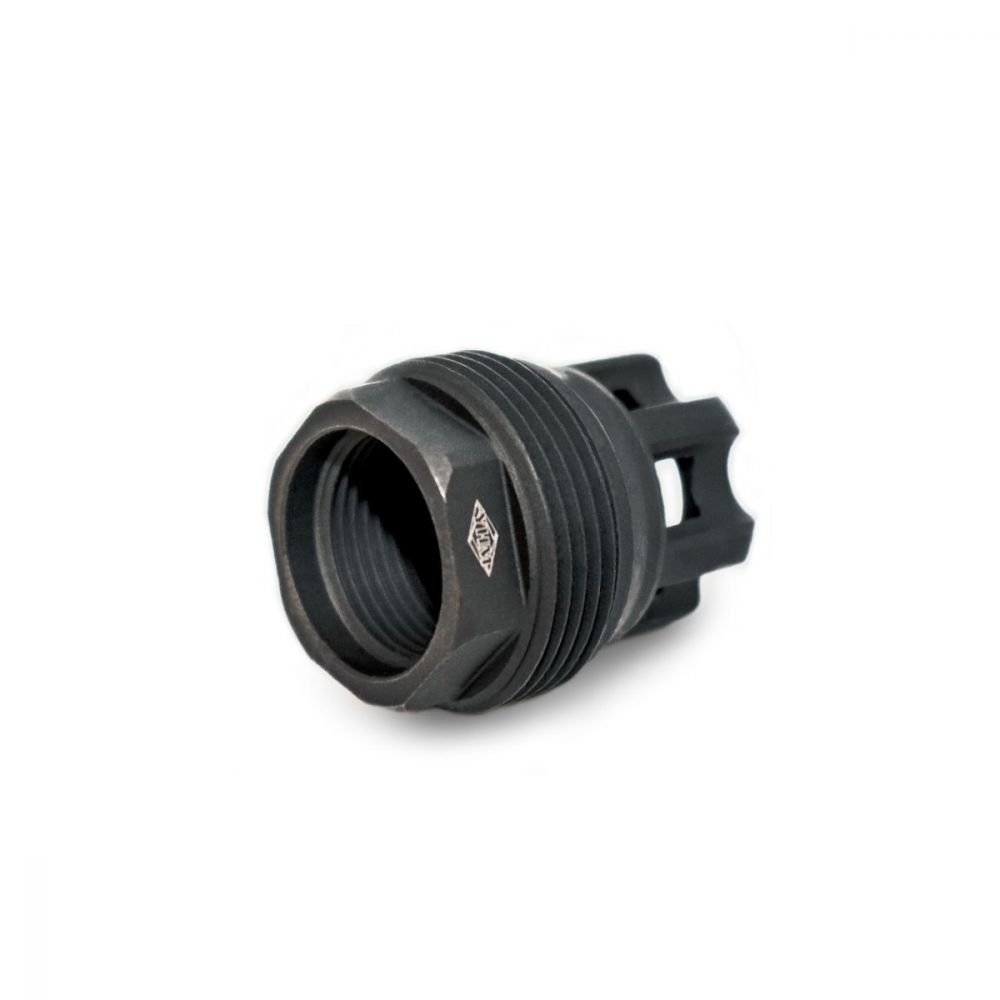 Introducing the YHM sRx™ Mini Muzzle Brake! YHM’s new line of sRx™ products were designed with aesthetics and ease-of-use as the top priorities, and that is no different for the YHM sRx™ Mini Muzzle Brake (YHM-4401-MB). This Q.D Muzzle Brake comes in two variations (1/2×28 & 5/8×24) and it’s compatible Q.D. Adapter/Mounting Interface attaches to the industry standard (HUB) 1.375” x 24 threads. It features an internal taper seal-in front of the threads-that locks your suppressor on and forms a tight seal to contain gasses while in-use. This means no gasses or debris can build up on the threads.