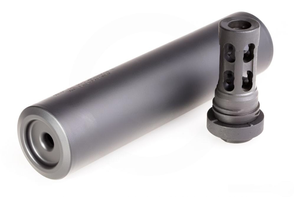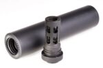 The Titanium 5.56 Phantom QD employs sturdy grade 9 titanium (obviously) and Inconel 718 construction for increased strength, superior durability, and remarkable weight savings. This suppressor offers the same sound reduction (35 dB) as the standard Phantom QD model, but the weight disparity (12 ounces to 20 ounces) is a huge gold star for the titanium unit. Moreover, YHM’s QD muzzle devices are as durable as they come, allowing this suppressor to silence its host firearm in an impressive manner.