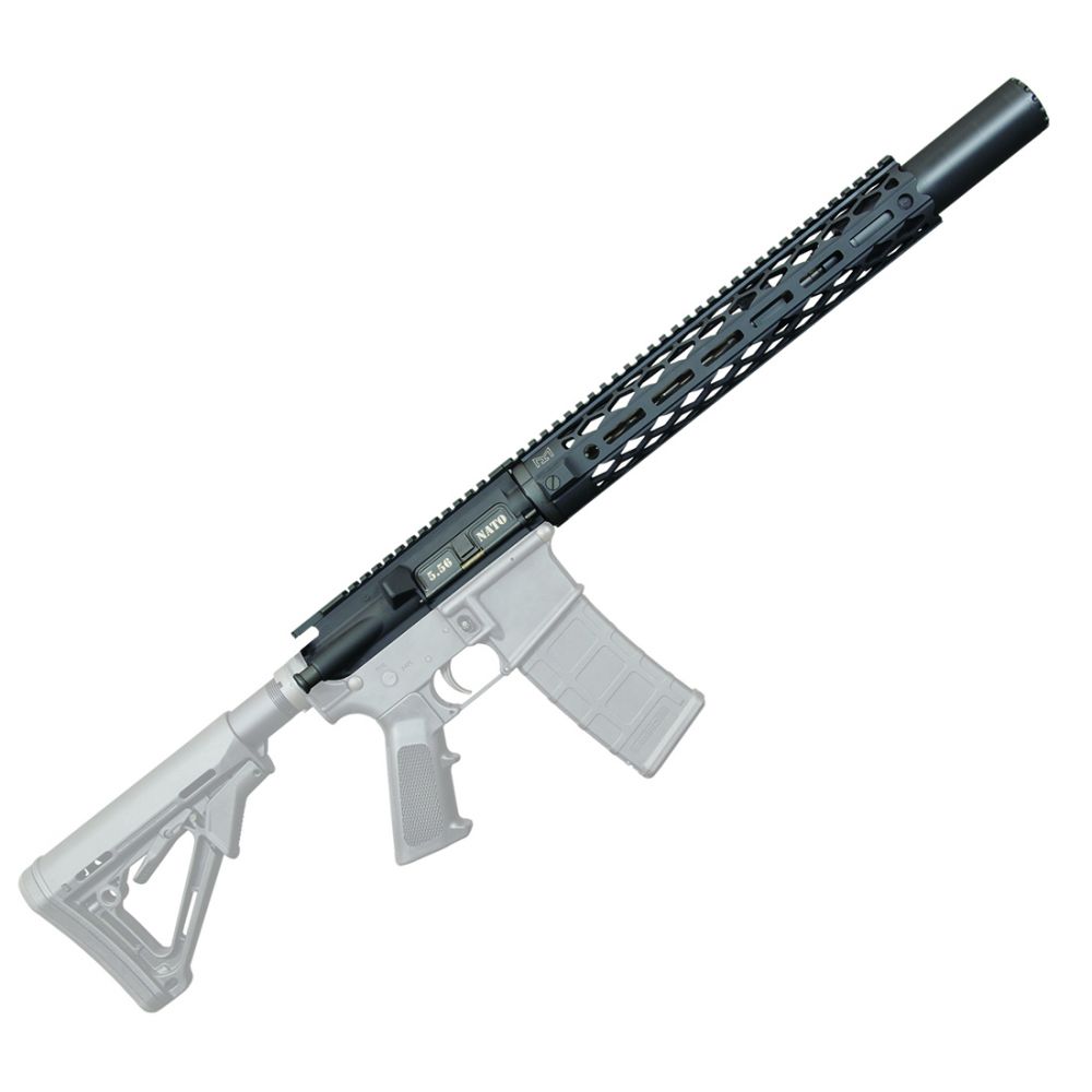 Included is our lightweight Rifle Length Black Diamond® M-LOK® Handguard. YHM Mil-Spec A3 upper, and a specially designed gas block which reduces blowback and cyclic rates.
