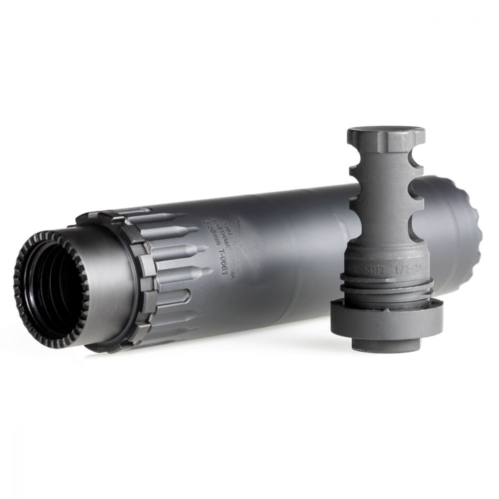 Taking bank accounts into consideration, YHM designed the Turbo as a cost-effective 5.56mm rifle unit that offers substantial suppression while remaining lightweight (13.5 ounces). Constructed of 17-4 stainless steel with an Inconel blast baffle, the Turbo sports a full-auto rating in its tubeless, 6.5” build. Additionally, the convenience of this QD model allows for more time shooting downrange than mounting the silencer onto your favorite rifle’s barrel. Turbo in more ways than one…