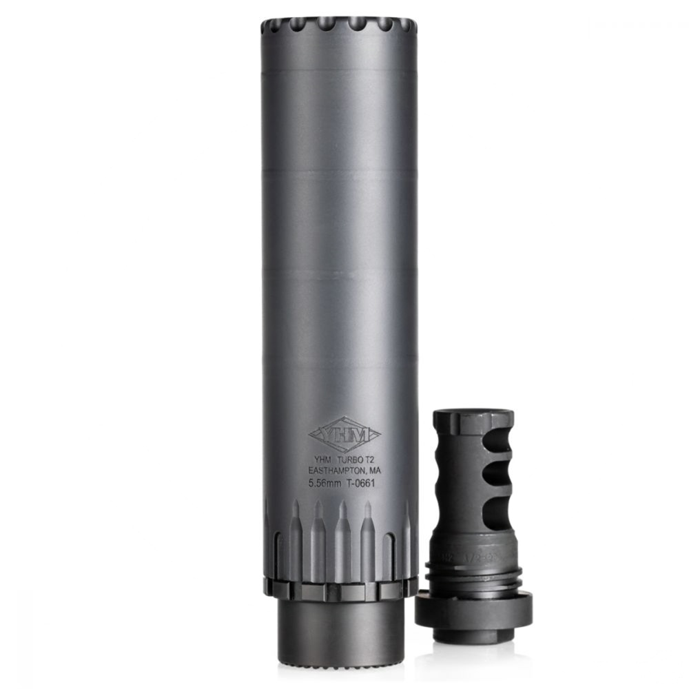 This just in… Yankee Hill Machine has updated their full-size 5.56 silencer for 2020! The YHM Turbo T2 is an ideal option for your 5.56mm rifles, and it brings increased durability and effective sound suppression to that class of silencers. Being a quick-detach unit (accompanied by an award-winning YHM Muzzle Brake), the Turbo mounts onto your preferred firearm in mere seconds. The Turbo T2 has been updated to include the 1 3/8×24 threaded mount on the rear meaning it is compatible with many other mounting solutions and even received an updated endcap. The notched rim and tri-port muzzle on the T2’s end cap add a significant amount of flash suppression over the previous model.